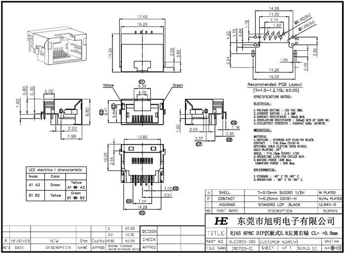 下一個: RJ45 正向沉板4.2 DIP LED左黃右綠