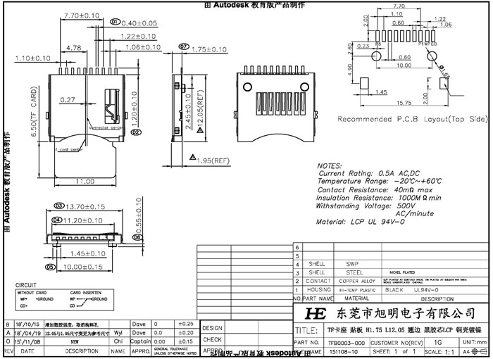 下一個(gè): TF卡座貼板 H1.75 L12.05 翹邊 黑LCP 銅殼鍍鎳 端子半金GF 卷裝
