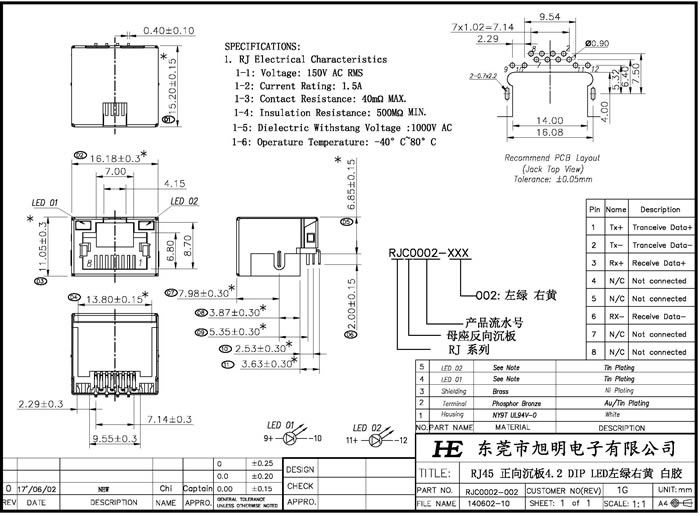 下一個: RJ45 CL-1.925mm 8P8C DIP沉板式6.95 全包帶燈