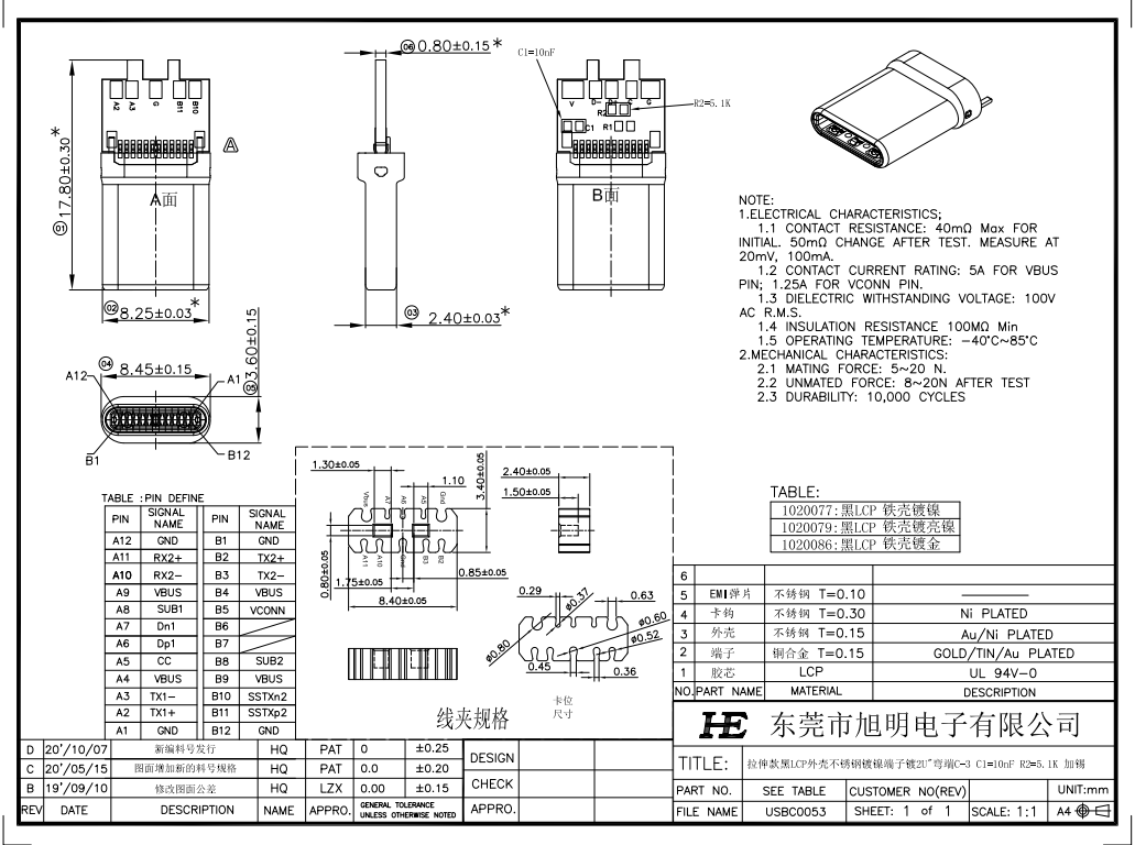 型號(hào):USB-Type-CM/夾板0.8拉伸款 種類:轉(zhuǎn)接頭 額定電流:1000mA